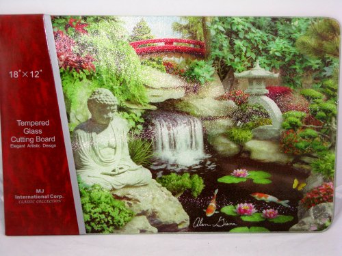 TEMPERED GLASS CUTTING BOARD LARGE 18" X 12" GARDEN SCENE BUDDHA WATERFALL BY ALAN GIANA Customer Review